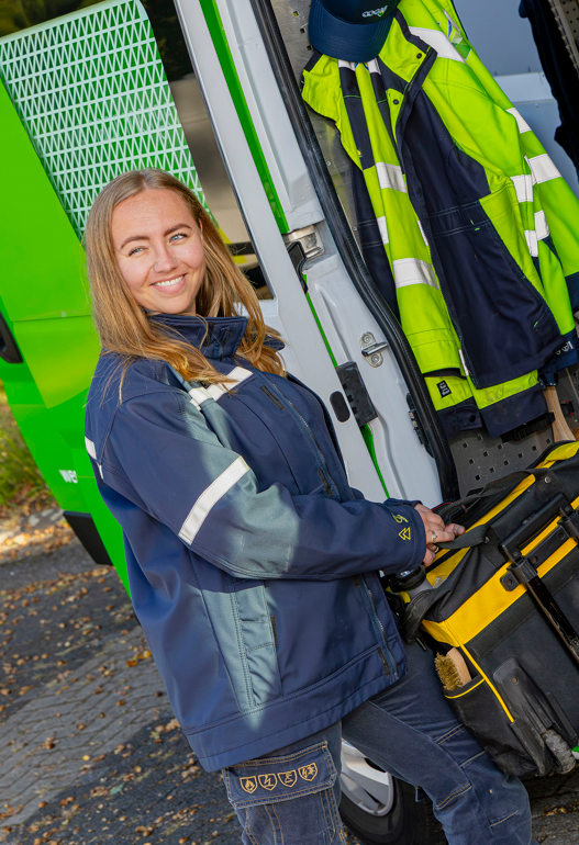 Als eerste vrouw in het serviceteam merkt Lycette dat klanten nog weleens verrast reageren. “Soms maakt iemand een lomp grapje of onhandige opmerking, maar daar kan ik goed mee omgaan. Meestal zijn klanten heel vriendelijk.” Binnen het team voelt Lycette zich volledig geaccepteerd. Ze waardeert de betrokkenheid en collegialiteit. “Iedereen staat hier voor elkaar klaar. Even bellen onderweg voor advies? Geen probleem. Dat geeft een hecht teamgevoel.”